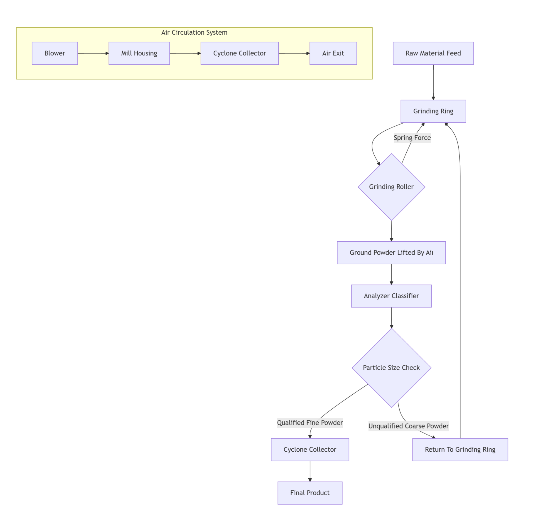 The operation of a Raymond Mill is a continuous process that integrates grinding, classification, and collection. The following flowchart outlines the core stages of its operation: